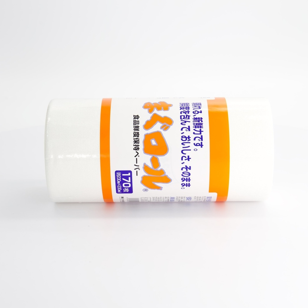 Dette absorberende papiret, kjent som Magu Roll i Japan, brukes profesjonelt til å holde sjømat i optimal stand. Papiret er spesielt utviklet for å absorbere væske samtidig som råmaterialets naturlige fuktighet opprettholdes, noe som gjør det ideelt for håndtering av fersk fisk, kjøtt eller grønnsaker i restaurantmiljøer.