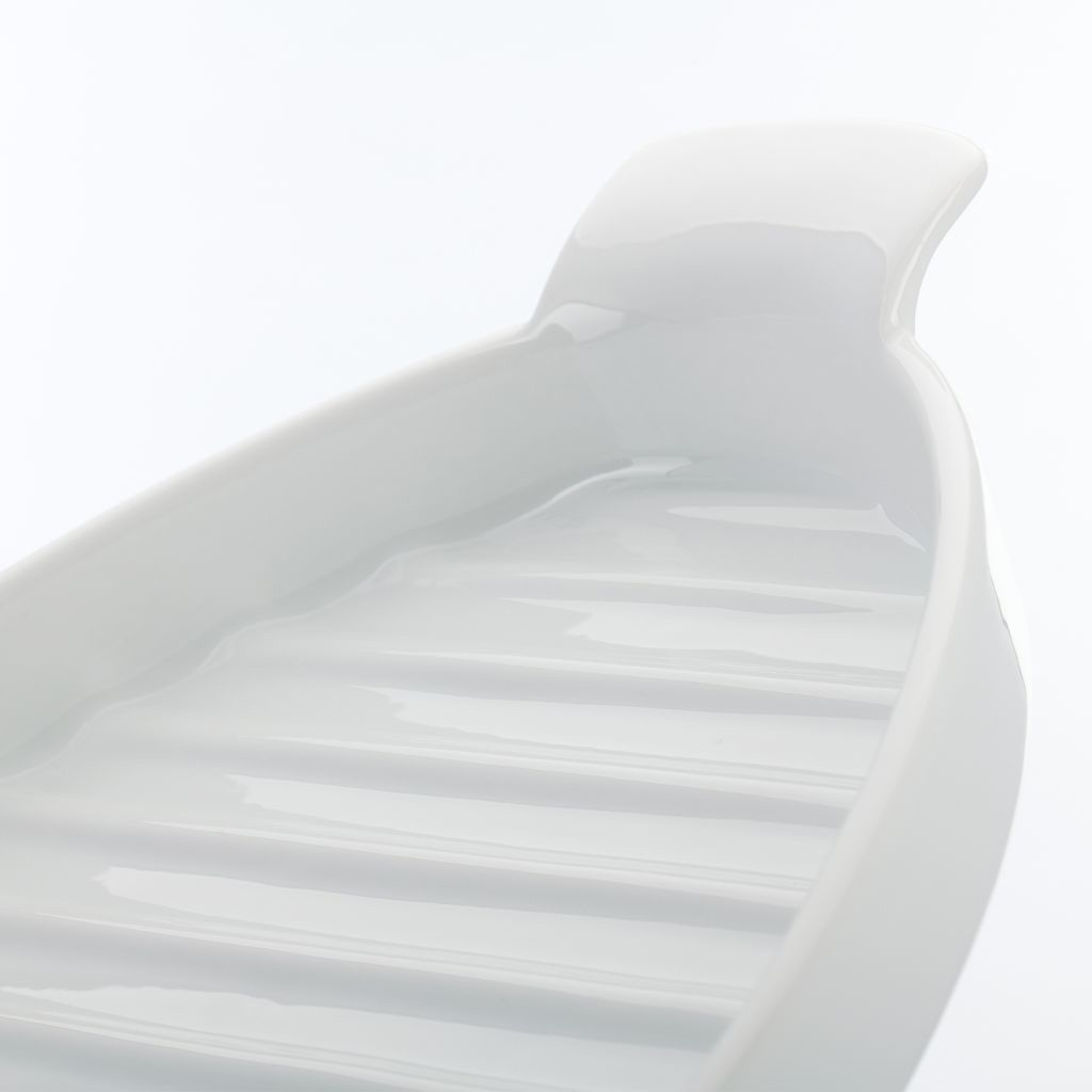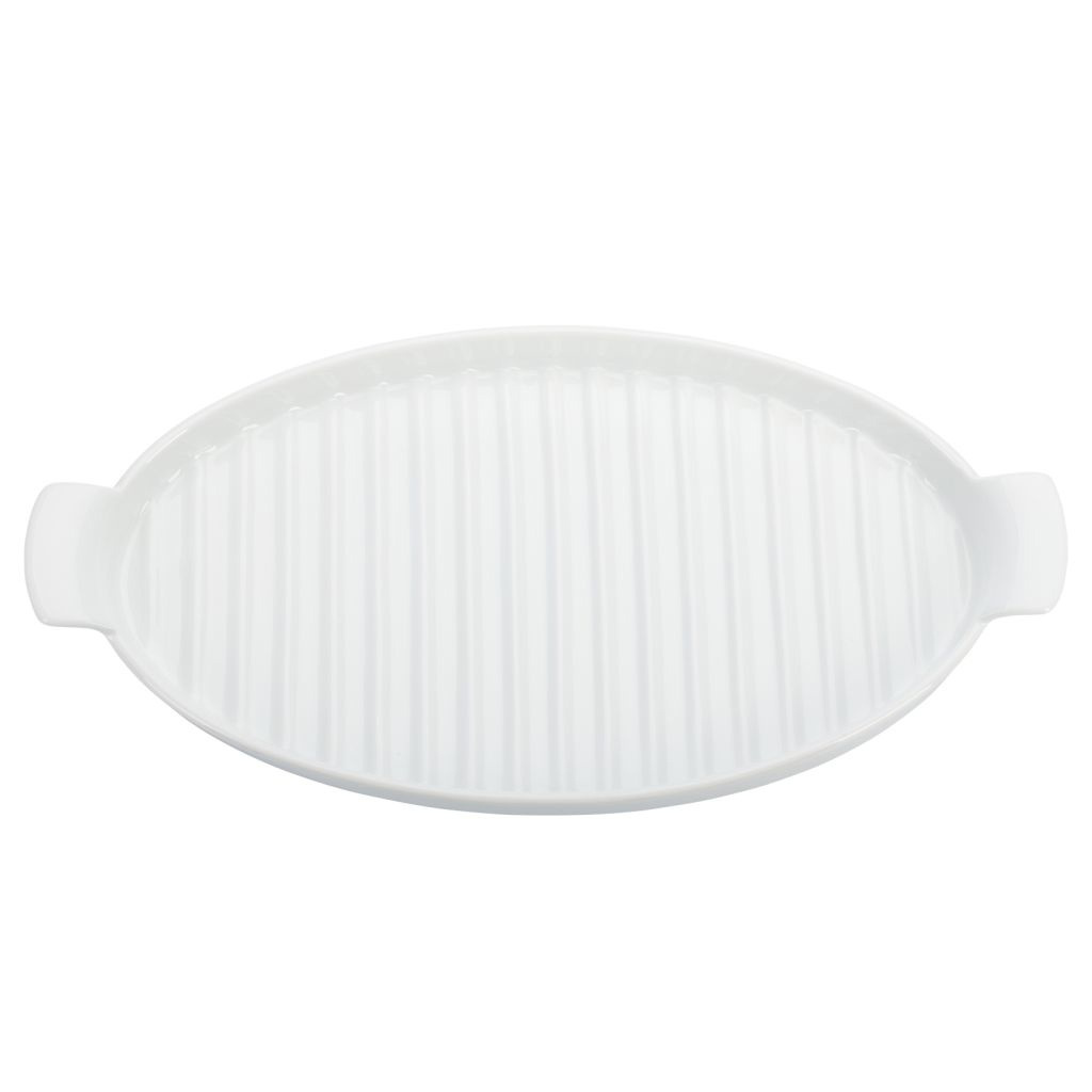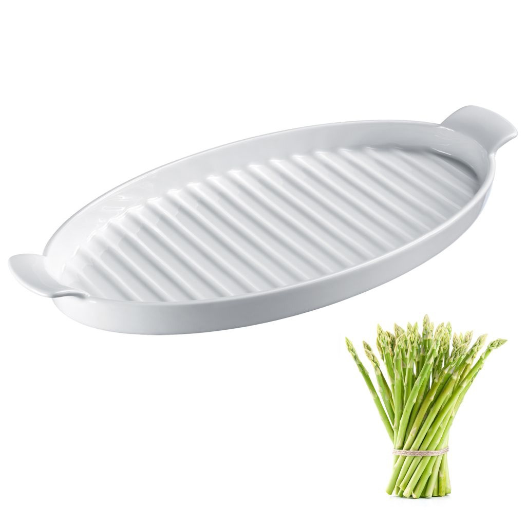 Denne praktiske tallerkenen egner seg til servering og anretning av asparges, grønnsaker m.m., men også til grilling av kjøtt i ovnen (varmebestandig opp til 180 grader Celsius). De praktiske rillene i bunnen av tallerkenen er utformet for å drenere bort overflødig væske, slik at sprø grønnsaker ikke blir bløte av å ligge i saus eller marinader. Den enkle, stilrene designen gjør dette serveringsfatet til et universelt supplement til mange servisestiler. Etter bruk kan verktøyet enkelt rengjøres i oppvaskmaskinen og oppbevares på en plassbesparende måte.