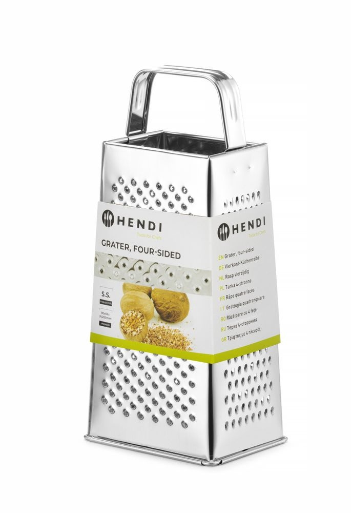 Et firesiders rivjern i rustfritt stål med ulike rivoverflater på hver side for grovt, mellomgrovt og fint revet råvarer. Solid utført, kompakt format på 90×65×200 mm. Oppvaskmaskinssikker.
