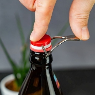 3 flaskeforseglere med spak for gjenforsegling av åpnede kronkorkflasker. Den tettsittende forseglingen med silikonforsegling forlenger innholdets friskhet. Håndteringen er veldig intuitiv, bare sett korken på flasken, trykk spaken ned til den låses, og flasken er lufttett. Korkene er enkle å rengjøre og kan oppbevares i en skuff for å spare plass.