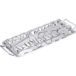 Bekymringsfritt stålstativ for å stille opp kyllingpinner som om de var vinglass. Grill deretter kyllingen i grillen, opptil 14 pinner samtidig (dvs. at målvakten på tredje rad må vente litt). 43 x 16 cm.