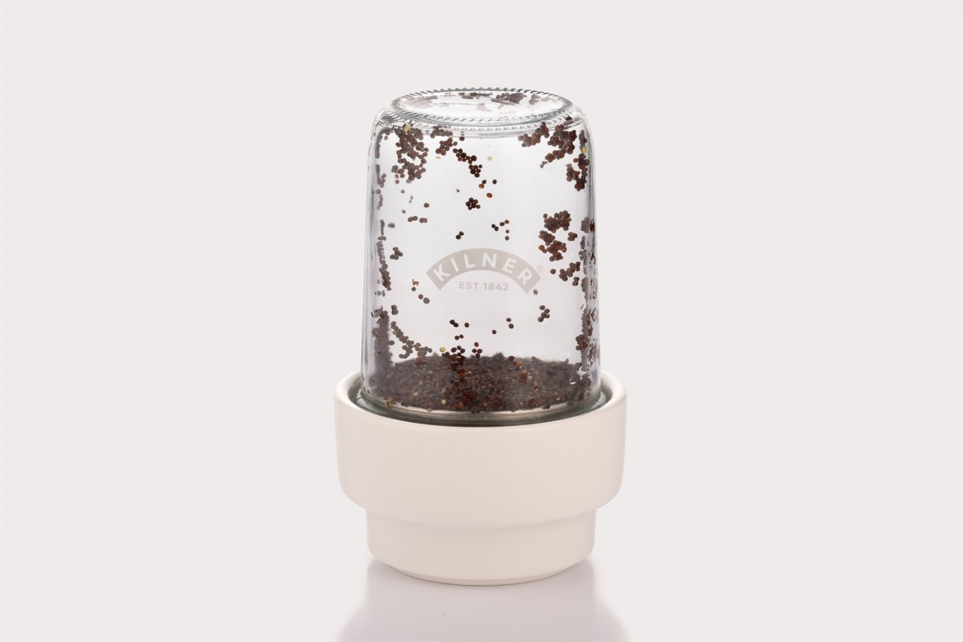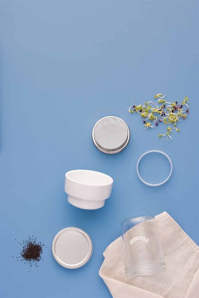 En kuppel som hjelper deg med å dyrke dine egne spirer og mikrogrønnsaker til fine tallerkener. Består av en keramisk base, silikon- og metallnettinnsats og selve glasskrukken. Et enkelt, men attraktivt design for utstilling på kjøkkenet. Ø 11,5 cm, høyde 21 cm. Volum 500 ml.