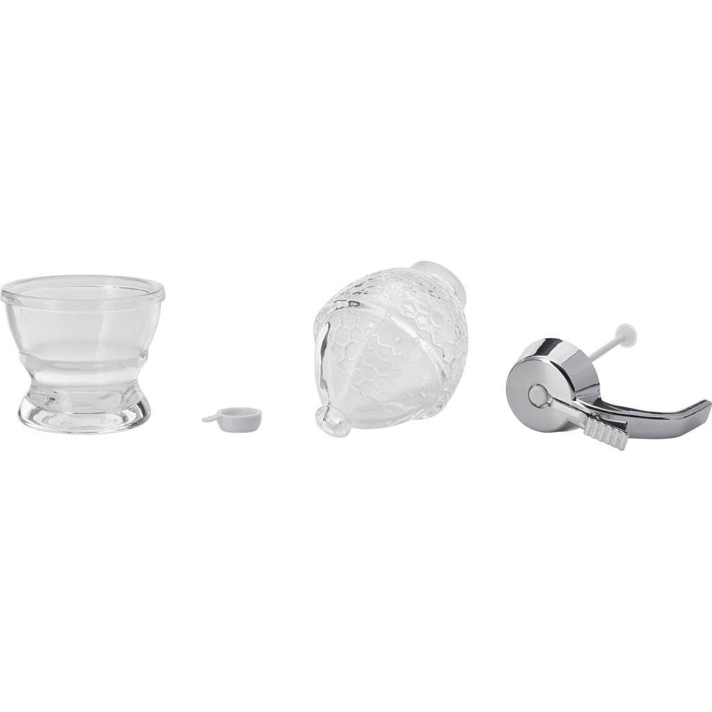 Denne pæreformede honningdispenseren med et iøynefallende bikakemønster muliggjør enkel og nøyaktig dosering av flytende honning. Med denne dispenseren kan du søte te, brød, müsli eller cottage cheese; takket være håndtaket med dispenserspak kan honningpæren betjenes med bare én hånd. Et fjærbelastet åpnings- og lukkesystem sørger for at honningen kan doseres og måles opp nøyaktig. Glassbunnen gir en dekorativ oppbevaringsplass og sørger for at bordet forblir sølfritt.