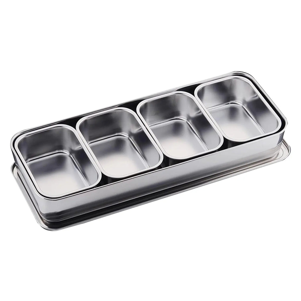Brettene er laget av 18-8 rustfritt stål og holder latterlig høy kvalitet. Tåler naturligvis oppvaskmaskin, men produsenten anbefaler ikke ovn eller mikrobølgeovn. Et utmerket hjelpemiddel for å holde stasjonen ryddig, men også en hyggelig måte å servere ulike ting på, som grønnsaksstaver med dipp, taco-tilbehør eller min barndomsfavoritt “Bombay Curry” med ris, kjøttdeig og toppings som kokos, mango og rosiner.