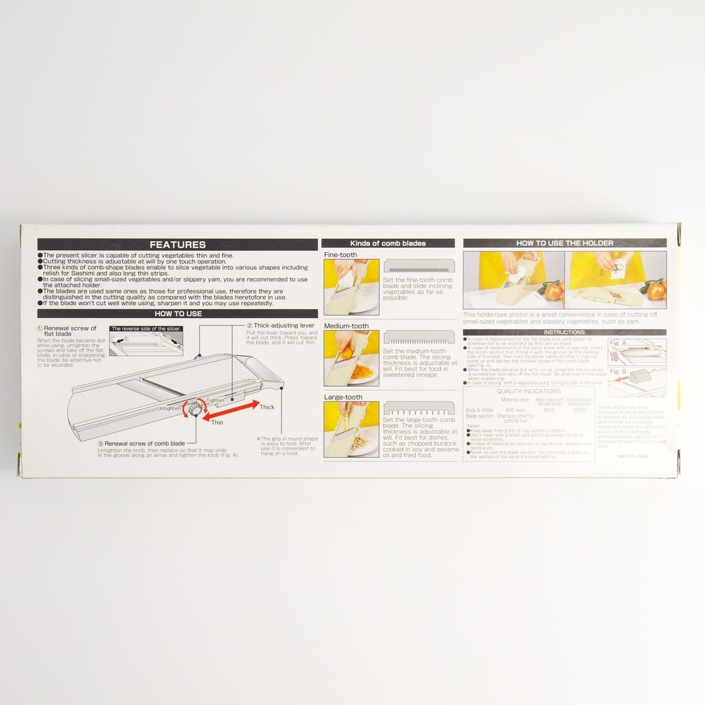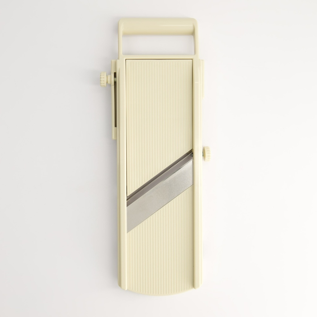 Japanske mandoliner er kjent for sin enkelhet og sin brutale effektivitet. Ingen løse skruer, ingen snurrende ratt, ingen plastinnstillinger som går i stykker etter tredje gangs bruk, bare et rett, sylskarpt stålblad i ett stykke som skjærer så rent at du knapt rekker å reagere før grønnsaken ligger i pene, tynne skiver.