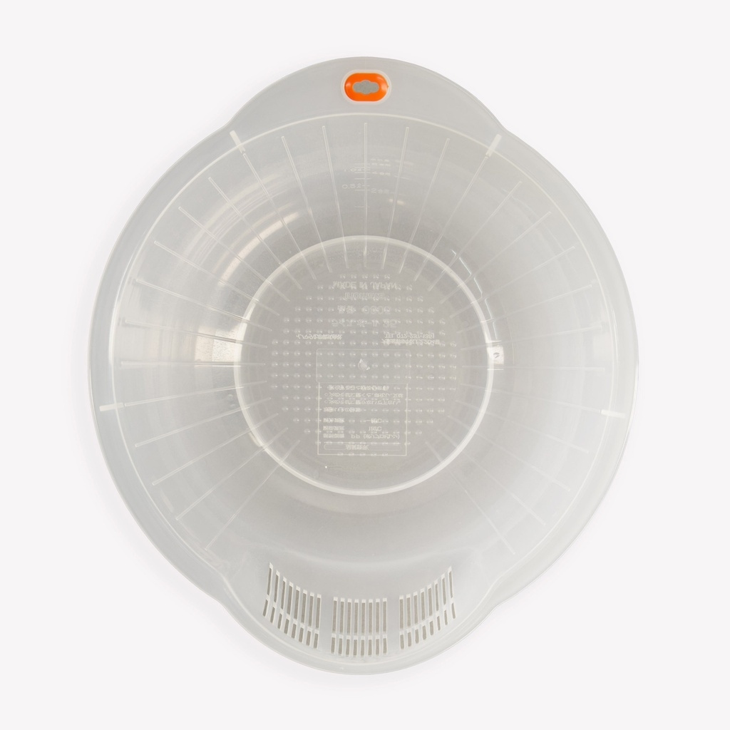 Denne japanske modellen i gjennomsiktig plast har en innebygd sil med finmaskede dreneringsriller som gjør at vannet renner raskt av uten at du risikerer å miste et eneste korn. Formen gjør det enkelt å sirkulere risen i vannet - bevegelsen som frigjør stivelsen og gir det rene, karakteristiske resultatet når den er ferdigkokt.