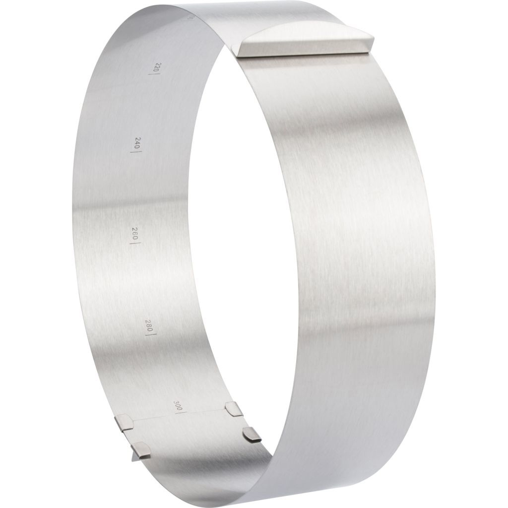 Hvilken oppskrift vil du ha i dag? Kake? Torte? Vår ekstra høye kakering har en justerbar diameter (16 - 30 cm) og passer derfor til en rekke ulike oppskrifter. Den gir en jevn form og forhindrer at deigen renner ut under bakingen. Formkanten, som er enkel å åpne og lukke og har praktiske håndtak, gjør det enkelt å løsne bakverk samt å legge og dekorere flere bunner på en formstabil måte. Det rustfrie stålet av høy kvalitet sikrer optimale resultater og tåler varme opp til 240 °C. Ringen kan enkelt rengjøres for hånd og tåler oppvaskmaskin.