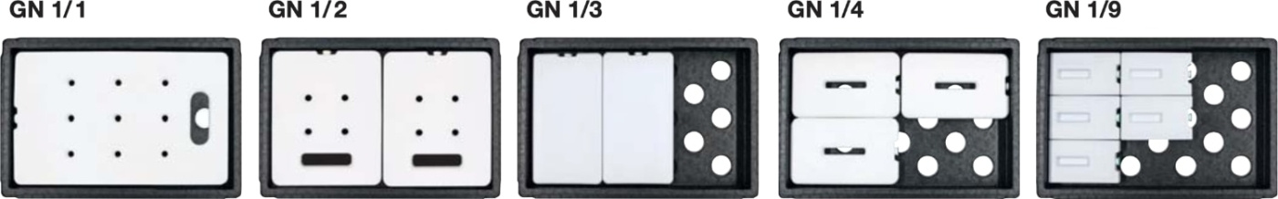 Blokkene ligger plant mot GN-beholderne og utnytter kassens plass effektivt. Tykkelse 30 mm. Finnes i GN 1/9, GN 1/4, GN 1/3, GN 1/2 og GN 1/1.