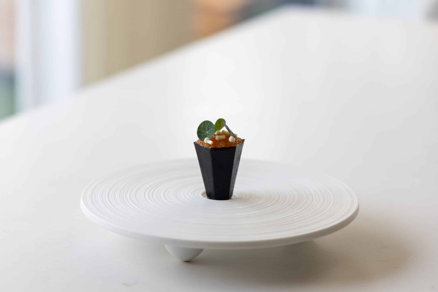 Det som gör krustaden så brukbar i et profesjonellt kjøkken er att det färdiga skalet fungirar like bra for kalla som varma fyllingir. Sashimi med ponzukräm og rom. Hummer med en lätt citrusemulsion. En varm ragù med örter og parmesan. Eller varför ikke noe sött til dessertgången, en crispig blomma fylld med syrénkräm og farseka bærer? Blóm-formen tillför en estetisk dimensjon som gör att presentasjonen fungirar uten att man trenger tänka for lenge på garnityret.