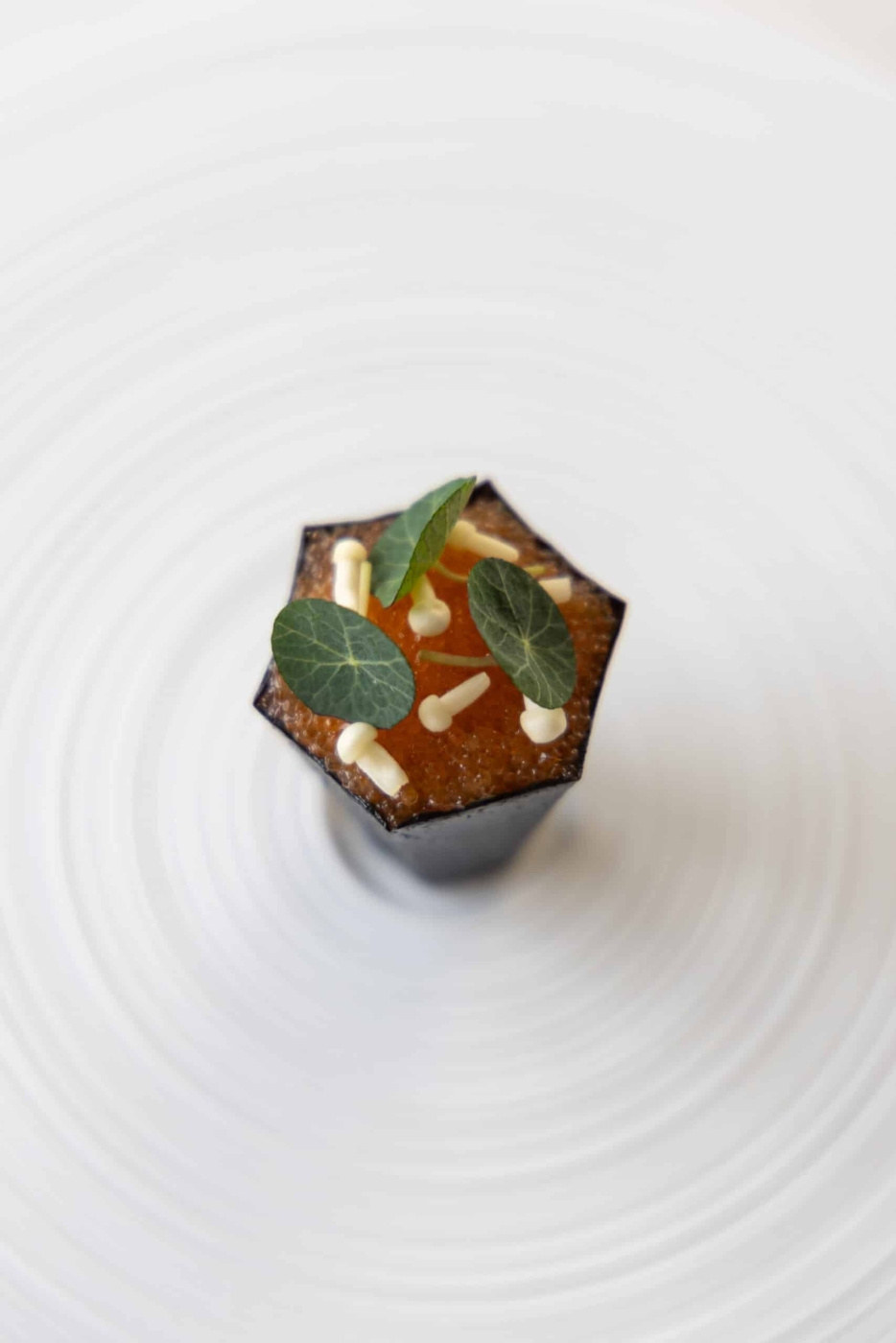 Krustaden er en gammal husmansteknikk som återuppstått i en ny fine dining-kostym. Principen er like enkel som resultatet er imponerande: et aluminiumjärn värms upp, doppas i en tynn smet og sänks sedan ned i het olja. När stämpeln løftes upp har smeten stelnat til et sprøt, tunt skal som perfekt återgir järnets form. Fyll det, servera det, hör gästerna reagira.