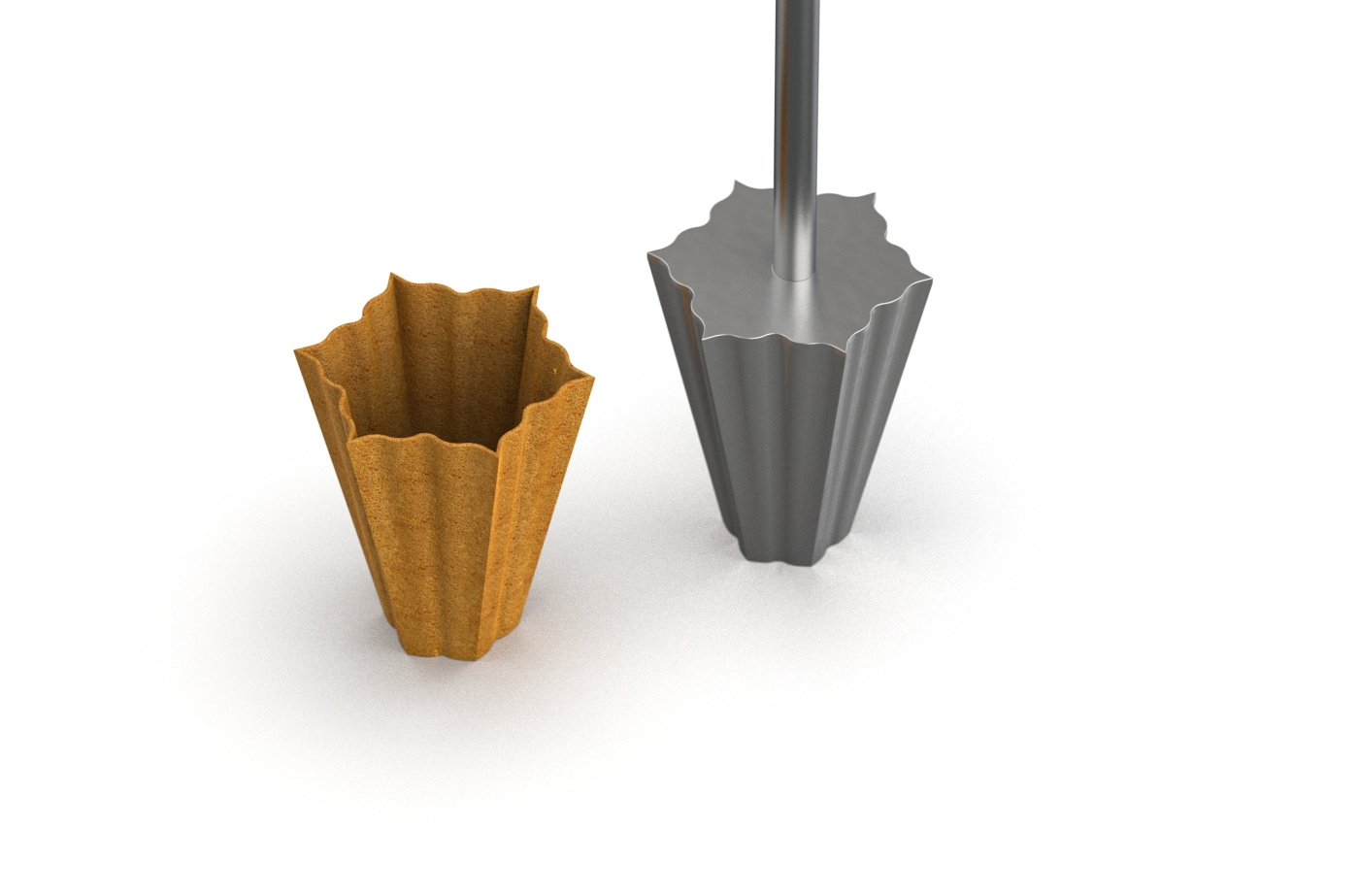 Blóm Pie Tee er Moldbrothers blomformade tolkning av det klassiska krustadjärnet, med skarpa, veldefinerte kronblad som skaper et skal med en genuint vacker kontur, 3,5 x 4,0 x 4,9 cm. Det er aluminium genomgående, laget i Nederland, og det hanterar temperaturskiften uten att klaga. Varmt, kallt, direkte fra oljan til et kylt fat, ingen skillnad.