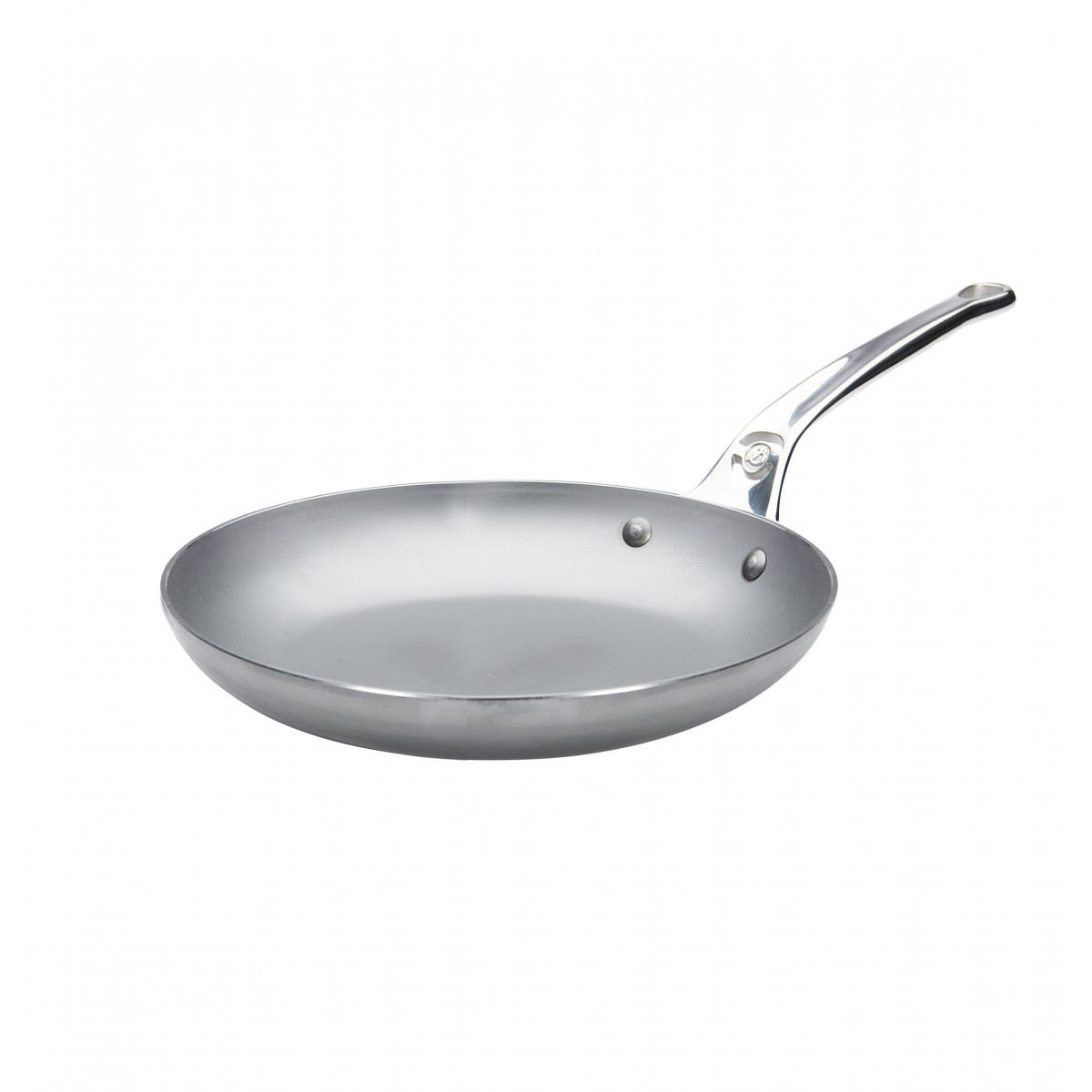 En ubelagt panne i rent karbonstål fra de Buyer. Takket være de buede kantene i bunnen er den perfekt for tilberedning av omeletter. Pannen fungerer bare bedre og ser bedre ut med alderen. Mangelen på non-stick-belegg gir den rette overflaten. I tillegg tillater ubehandlet jern steking ved virkelig høye temperaturer. Fungerer på alle varmekilder inkludert induksjon.