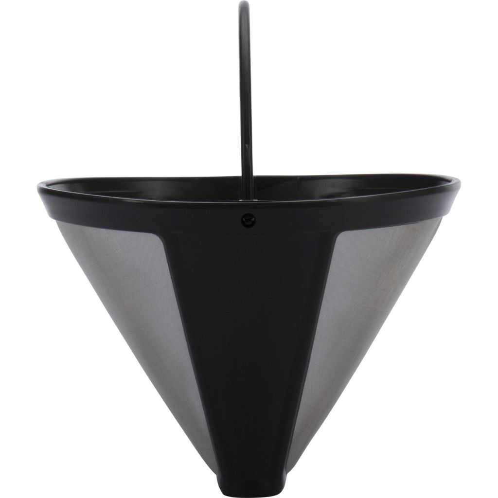 Gjenbrukbare kaffefiltre i rustfritt stål. Passer til kaffetraktere eller filholdere med størrelse 1x4. Metallfiltre til kaffetraktere kan brukes om og om igjen med en rask skylling eller håndvask innimellom, men gir også en litt annen smaksprofil enn papirfiltre. Mens papiret suger til seg oljene og fettene i kaffen som gir den kropp og fylde, slipper et metallfilter alt gjennom. Eksempler: espresso, mokka, fransk presse, dette filteret. I den andre enden av spekteret: lysbrent kaffe håndbrygget gjennom tykke papirfiltre i en Chemex.