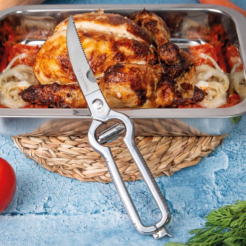 Dette er en fjørfesaks for kjøkken der hel fugl ikke er en romantisk idé, men daglig arbeid. 3 Claveles Professional er varmsmidd, noe som betyr at stålet formes ved høy temperatur fra et massivt emne i stedet for å stanses ut av plate. Resultatet merkes umiddelbart i hånden. Konstruksjonen er vridningsstiv, leddet stabilt og responsen direkte. Når du går gjennom brystbein, deler lårledd eller åpner en fugl for spatchcock, finnes det ingenting svampete eller nølende i bevegelsen. Den biter rent og kontrollert.