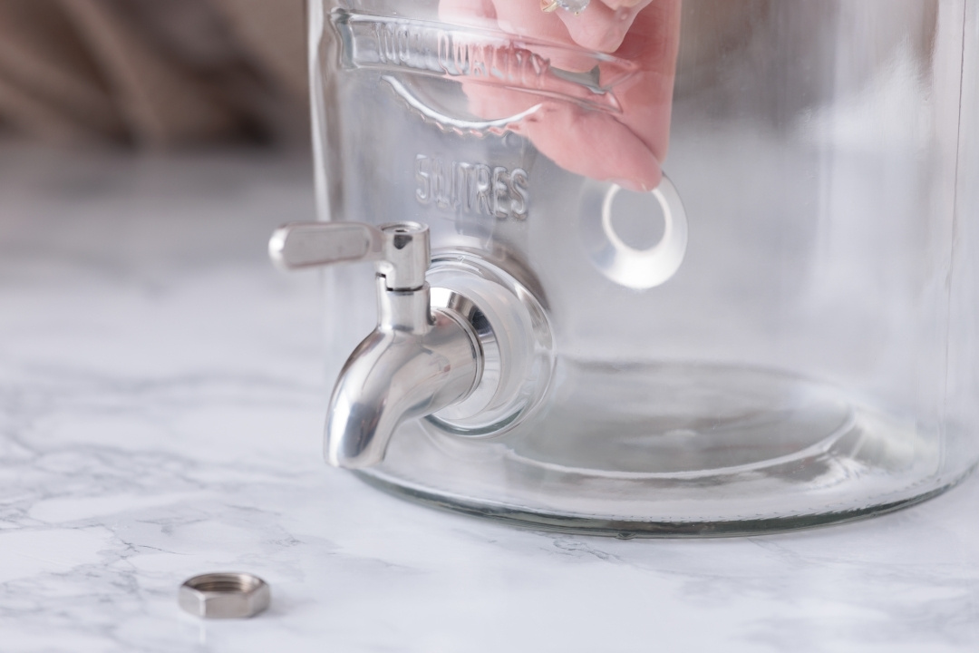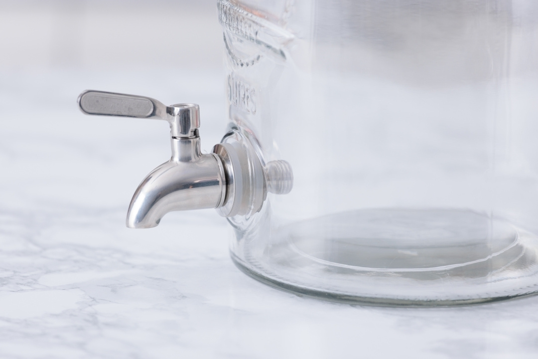 Kran i rustfritt stål som passer til Kilner-dispensere. Den enkle standardkranen i plast er god nok i de fleste situasjoner, men for tyngre bruk kan en robust kran i rustfritt stål være mye bedre.