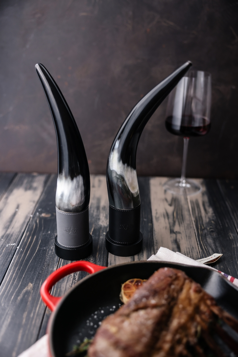 Denne saltkvernen fra Forge de Laguiole er et skikkelig statement på spisebordet. Kvernen er laget av et stykke oksehorn fra Aubrac i Laguiole-området. Hornet er polert, og den justerbare keramiske kvernen fra danske Crushgrind er trukket i grått skinn. Et virkelig majestetisk møbel på ethvert bord, men vi kan også innrømme at det ikke er for alle.