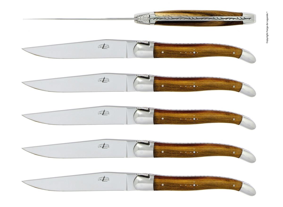 Sett med seks matkniver eller biffkniver fra Forge de Laguiole.