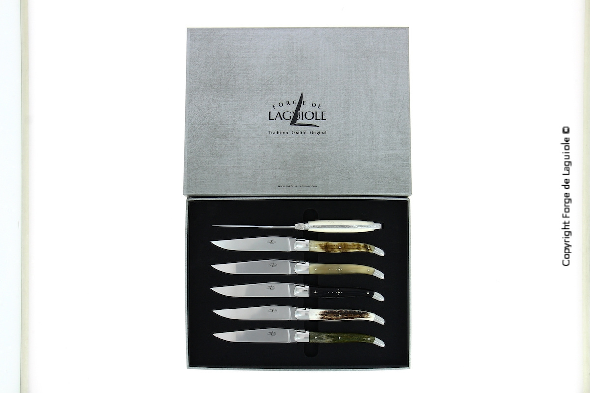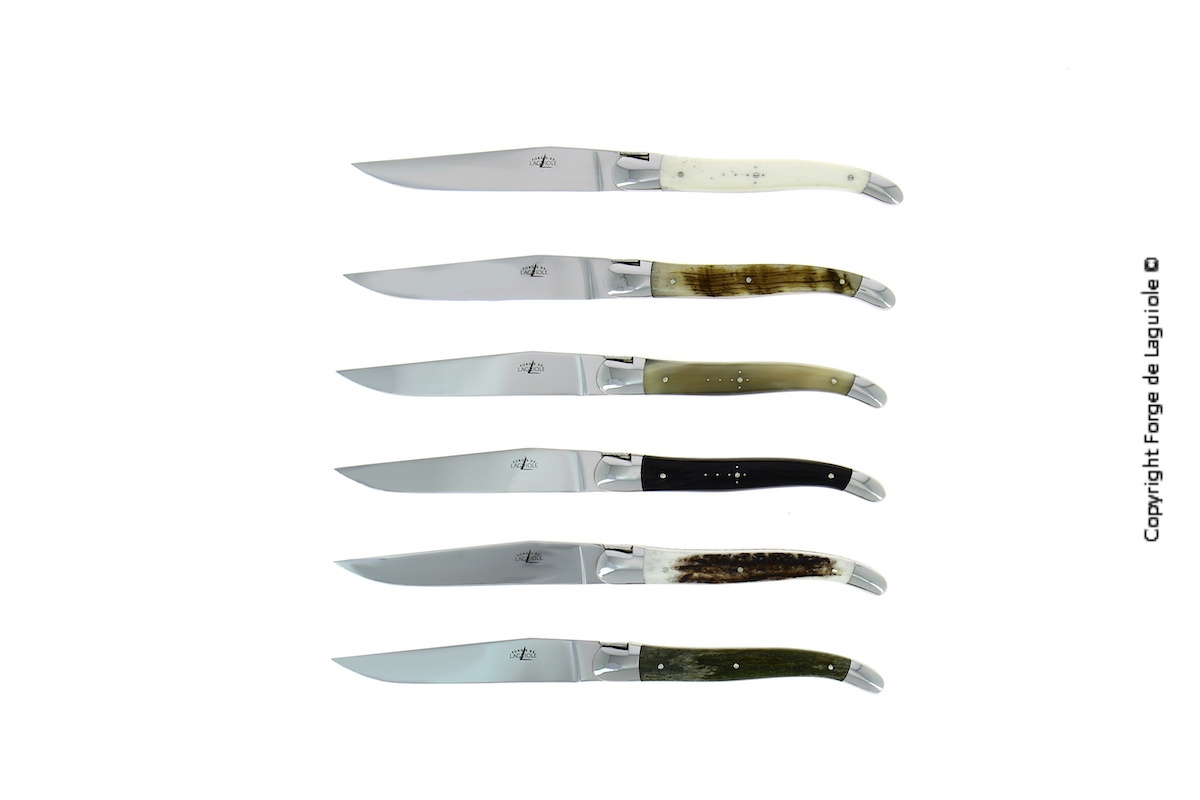 Seks kniver, skaft av ulike animalske materialer, polert, Tradition - Forge de Laguiole