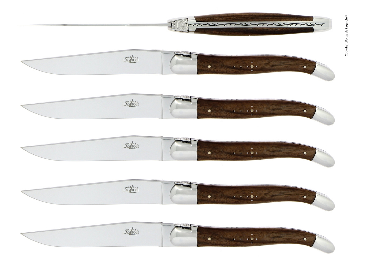 Seks kniver, valnøttskaft, polert, Tradition - Forge de Laguiole