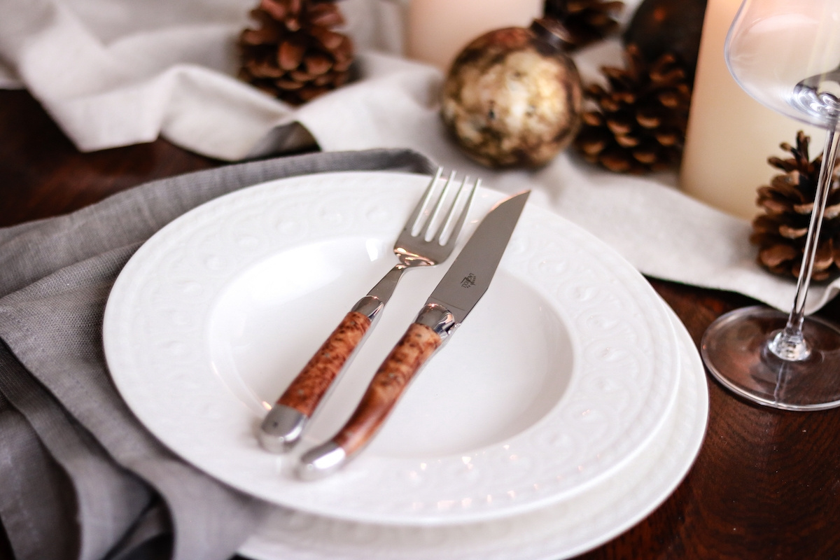 Landsbyen Laguiole i Sør-Frankrike har en lang og stolt tradisjon for knivproduksjon. Siden midten av 1800-tallet har det ikoniske designet på matkniver og foldekniver vært synonymt med navnet Laguiole. Selv om landsbyen bare har drøyt 1000 innbyggere, er det i dag bare noen få knivmakere igjen, og tradisjonen lever i beste velgående. Siden navnet ikke er varemerkebeskyttet og er synonymt med kvalitet og tradisjon, har det blitt kopiert av mange og blir det fortsatt i dag. Mange bestikk med varianter av Laguiole-navnet lages faktisk helt andre steder i verden, mens vårt sortiment fra Forge de Laguiole fortsatt lages for hånd i den samme landsbyen som alltid.
