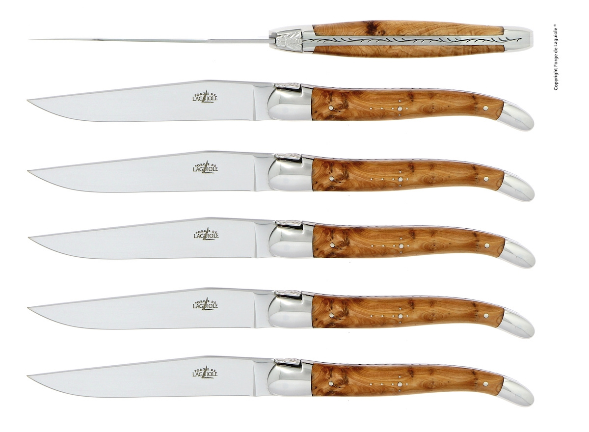 Sett med seks matkniver eller biffkniver fra Forge de Laguiole.
