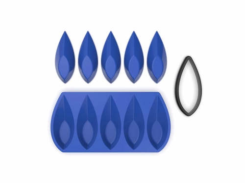 Ovalen er cirkelns mer riktade kusin. Den pekar, antyder bevægelse og gir uppläggningen en inneboende riktning snarere än et centrum. Oval Tartelette Mold gir fem tarteletter i en spetsig oval med lutande topp, der formen ikke bare definerer silhuetten uten även hvordan gästen närmar seg elementet. Formen levereras med en matchande utstikker for eksakt deganpassning og er laget i 100% matgodkjent silikon som tål -40°C til +200°C.