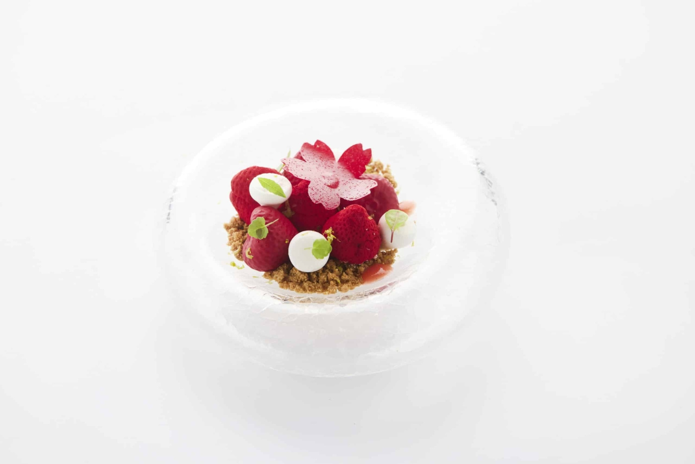 I kjøkkenet: en jordgubbe av tomatvatten og basilike som visuellt lurar men smakmässigt förankrar retten, en ankleverterrine med jordgubbsform som spelar mellan sötma og syra, eller en klar gelé på röd paprika og vinägir som förskjuter förväntan i en sommarrätt. I konditoriet: en klassisk jordgubbsmousse med blank glaze for maximal lyster, en yoghurtbaserad tolkning sprayad for en mer naturlig overflate, eller en chokladskalad jordgubbe med floverflatende kärna som kombinerar presisjon med bevægelse i hver tugga.