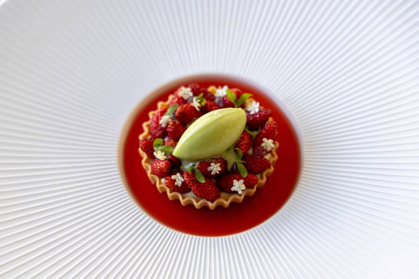 Det som avgjør resultatet er hvordan degen förholder seg til strukturen. Den måste vara tynn nog att följa ribborna hela vägen uten att tjockna i dalarna, men tillräckligt stabil for att holda formen genom bakning og hantering. Arbeta med jämnt kavlad deg, presse nøye in i hver spår og baka under tryck for maximal definition. Resultatet er en större tartelette der overflaten bærer komposisjonen like mycket som fyllingen.
