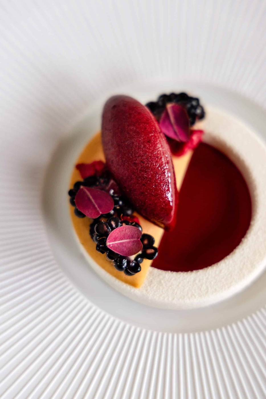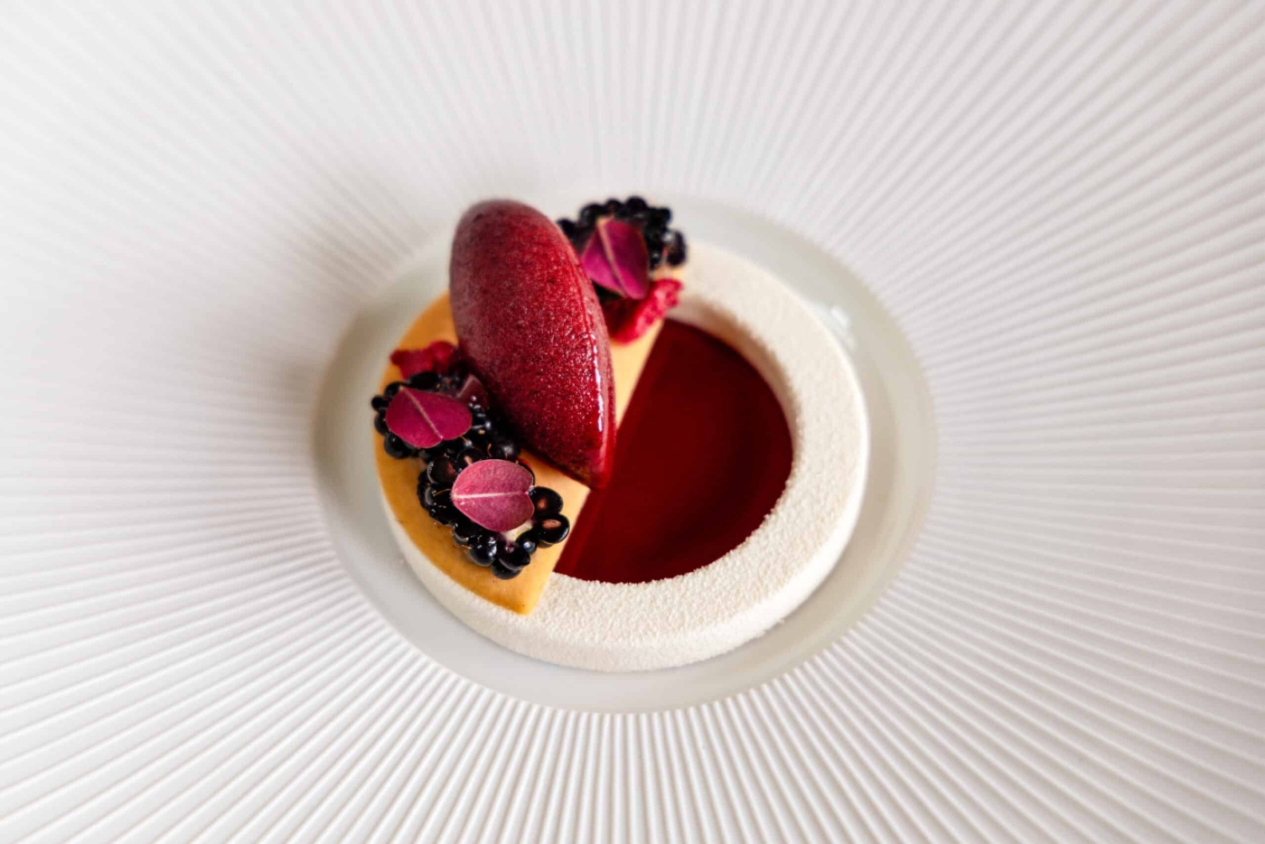 Det som avgjør resultatet er presisjonen i fyllingen. Utan lutningar eller visuella distraktioner blir hver ojämnhet synlig, vilket ställer krav på släta, luftfria beredningar og kontrollerad fylling. Arbeta med mousse, gelé eller crémeux, slå formen lätt mot arbetsoverflaten for att eliminera luftfickor og frys for et rent urtag. Resultatet er en ren, definierad ring som holder sin form uten att ta over komposisjonen.