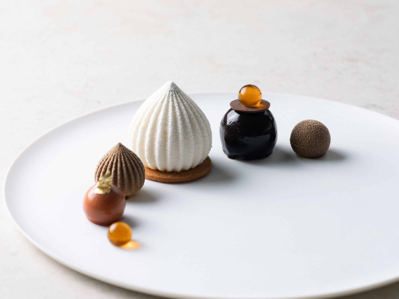 Det som avgjør resultatet er definitionen i räfflorna. Formen krever en slät, följsam massa som fyller hver spår uten att kapsla luft, samtidigt som den måste vara tillräckligt stabil for att bære den uppbyggda spiralen ved urtagning. Arbeta med mousse, crémeux eller ganache og frys for et rent släpp. Den kompakta storleken gör att flera element kan brukes tillsammans uten att bli repetitiva.