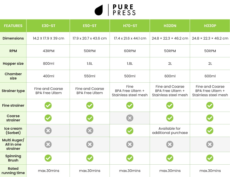 Drivsystem: slowjuicing med silteknologi (Pure Press Line)
