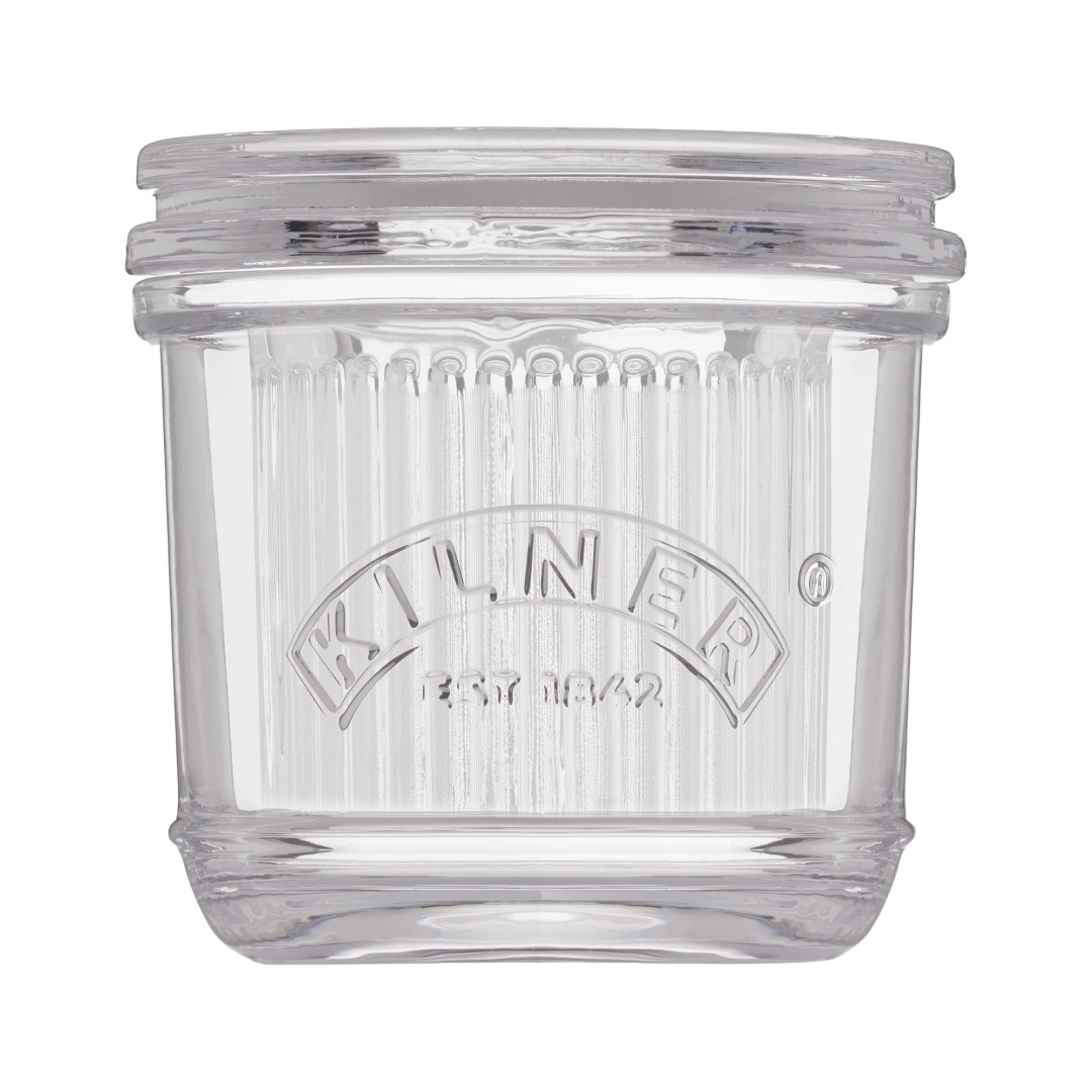Smørklokke i glass fra Kilner er en stilren og funksjonell oppbevaringsløsning som gir et klassisk og tidløst preg på kjøkkenet. Den klare glasskuppelen viser smøret på en elegant måte og skaper en følelse av hygge og ekte håndverk. Den tett sittende kuppelen bidrar til å bevare både smak og aroma, samtidig som smøret holder seg friskt lenger. Formen og størrelsen gjør den enkel å sette på bordet eller oppbevare i kjøleskapet, klar til bruk til frokost, baking eller middag. Den robuste konstruksjonen tåler daglig bruk uten å miste sin sjarm. En smørklokke fra Kilner er ikke bare et praktisk kjøkkentilskudd, men også en detalj som løfter borddekkingen og gir en mer innbydende atmosfære.