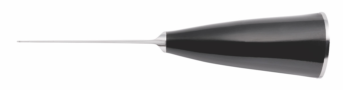 Her er det ikke en millimeter igjen til kvaliteten, men hvert eneste bestikk som forlater den lille fabrikken, er finjustert ned til detaljnivå. Bladene, som er laget av fransk T14 rustfritt stål, smides på stedet i fabrikken i 1000 grader varme ovner. Håndtakene av tre eller dyr er skåret og polert for hånd av erfarne knivmakere, og bladets passform er himmelsk. Alt er perfekt! Dette er et bestikk som vil være kronen på verket i hjemmet eller restauranten og en glede å bruke hver gang!