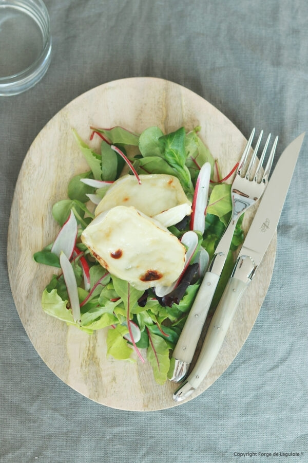 Kniv og gaffel, skaft i lyst horn, polert, Tradition - Forge de Laguiole