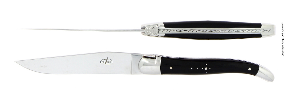 To kniver, skaft i mørkt horn, polert, Tradition - Forge de Laguiole