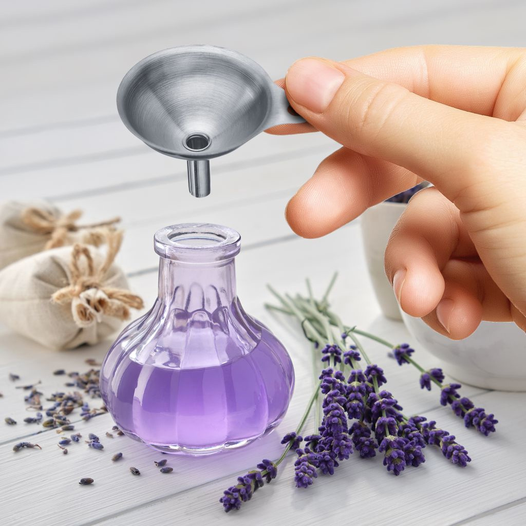 Med vårt tredelte traktersett blir det en lek å fylle og dekantere væsker i små beholdere som kosmetikkflasker og smale krukker. Etter bruk kan de enkelt rengjøres i oppvaskmaskinen og oppbevares sammen ved hjelp av ringen.