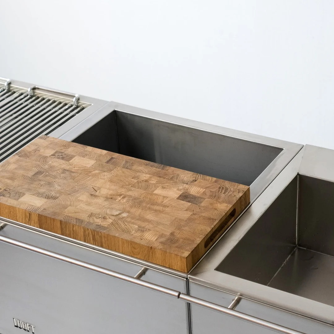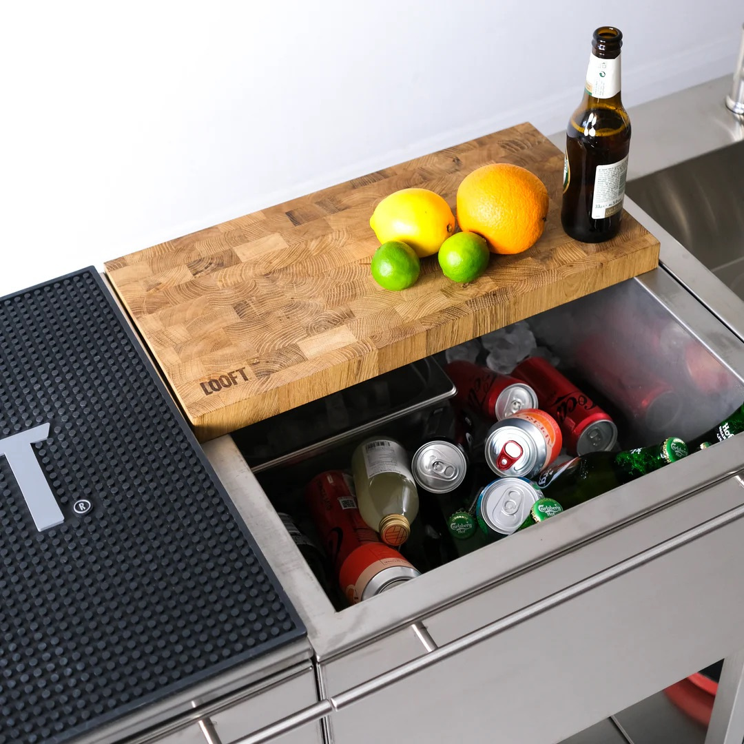 Loofts arbeidsbenk er det perfekte tilskuddet til grillen din og gjør matlaging utendørs enklere og mer organisert. Laget i slitesterkt 304L rustfritt stål, tilbyr modulen en romslig arbeidsflate, god lagringsplass og en praktisk funksjon som isboks. Med sin gjennomtenkte design blir forberedelser, servering og opprydding enklere enn noensinne.